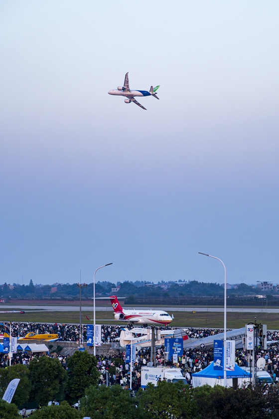 隨后,ARJ21飛機先行著(zhù)陸,C919飛機繼續進(jìn)行低空通場(chǎng)、大俯仰角爬升等單機飛行表演。飛行大會(huì )期間,這兩架飛機還將進(jìn)行地面靜態(tài)展示。