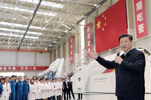 2007年9月20日,在即將打響攻堅戰的總裝廠(chǎng)房里,在“綠皮”的ARJ21飛機前,習近平講到,新支線(xiàn)飛機項目承載著(zhù)黨和人民的重托,承載著(zhù)中國民航產(chǎn)業(yè)發(fā)展的歷史使命?!靶轮Ь€(xiàn)飛機項目的立項建設,充分體現了中華民族的自強自立,充分顯示了我國在航空領(lǐng)域占有一席之地的決心。要盡最大努力,盡最大可能,建設好這個(gè)項目,努力為我國航空戰略的發(fā)展多做貢獻?!保ㄕ孕氯A社文章)